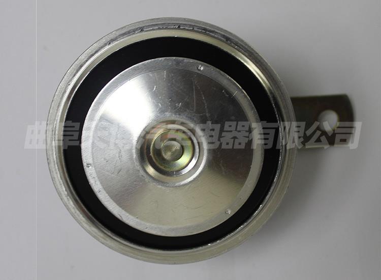 机械式盆型喇叭都由铁芯、磁性线圈、触点、衔铁、膜片等组成。当司机按下按钮时,电流经触点通过线圈,线圈产生磁力吸下衔铁强制膜片移动,衔铁移动使触点断开,电流中断磁力消失,膜片在本身的弹性和弹簧片作用下又同衔铁一起恢复原位,触点闭合电路接通,电流再通过触点流经线圈产生磁力,重复上述动作。如此反复循坏膜片不断振动,从而出音响。共鸣板与膜片刚性联接,可使振动平顺发出声音更加悦耳。