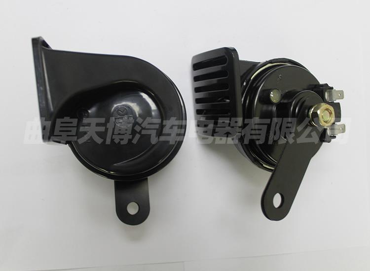 蜗牛形汽车电喇叭附带扬声筒,扬声筒卷成蜗牛形以压缩体积,音质优美响亮。