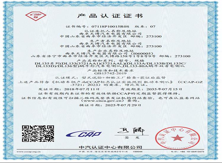 蜗牛型喇叭3C证书